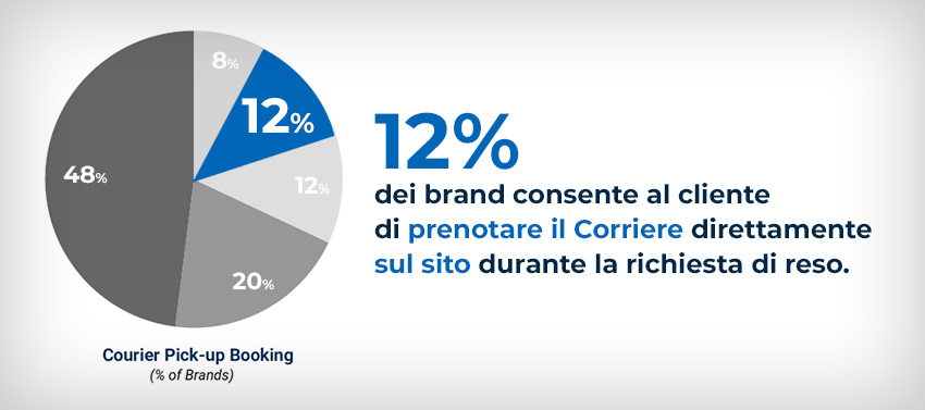 - Tra il momento di richiesta del reso e la conferma del rimborso possono passare diversi giorni, il 16% dei brand però riesce a mantenere il cliente informato, comunicando con lui in tutte le fasi del processo.